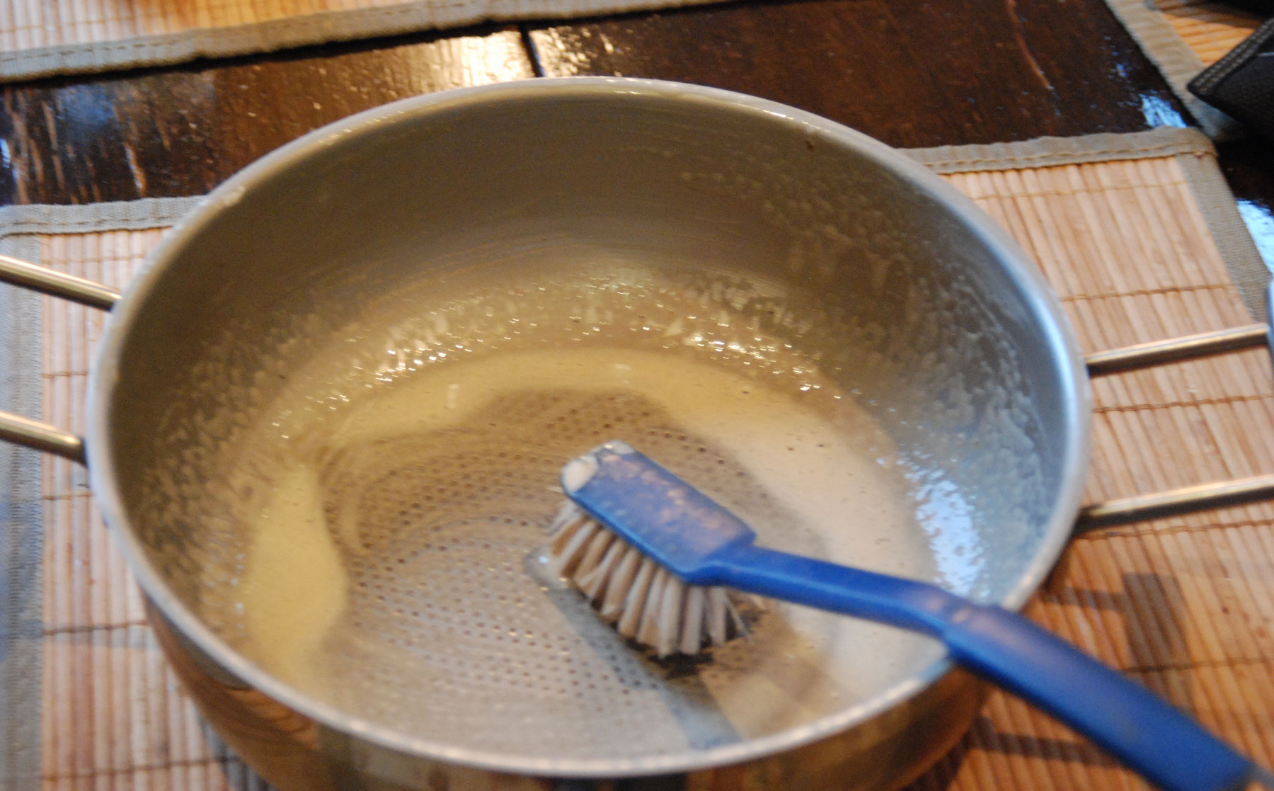– Сыворотка. Издавна использовалась для удаления пригара. Сыворотку наливают в кастрюлю так, чтобы дно было полностью скрыто и оставляют на сутки. После этого моют кастрюлю губкой.