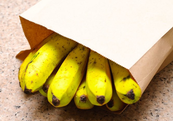 - Бананы. Часто приобретенная гроздь бананов покрывается пятнами, и они теряют вид. Если щедро обмотать скотчем корешок грозди и прекратить доступ воздуха, то бананы продержатся желтыми и красивыми гораздо дольше.