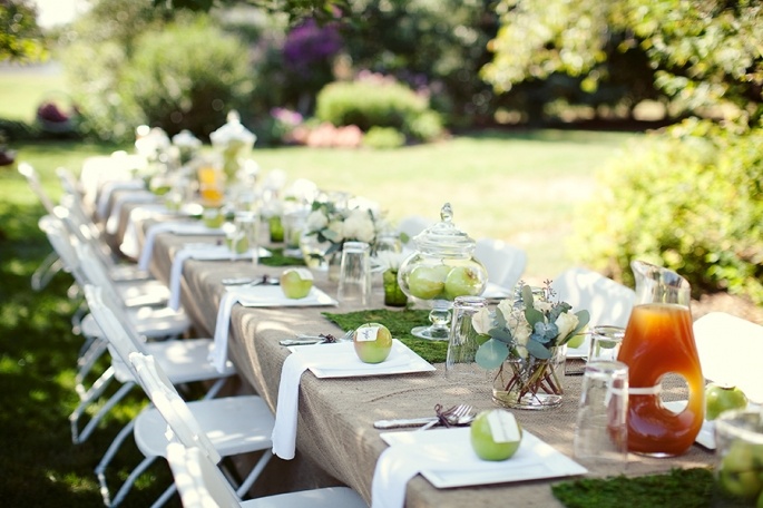 - Атрибутика. Сервировка стола для дня рождения подразумевает яркие краски и сделанные своими руками милые плетеные вещи. Если вы не любитель плести, можете сделать сервировку стола салфетками. Не забудьте также поставить на стол цветы таким образом, чтобы они не закрывали лицо хозяина или виновника торжества. Фрукты выкладывают в специальные корзинки, которые ставят на два края стола, считается хорошим тоном, если корзинки одинаковые.
