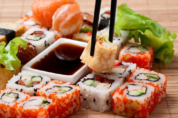 Блюда которые подаются в японских ресторанах переливаются всем цветами радуги. Лосось – цвета осени, икра переливающаяся перламутром, зелень придающая спокойствие этой акварели. Но стоит помнить что не все йогурты.., а точнее не все украшения съедобны.